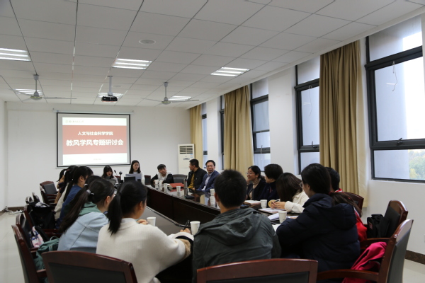 组织召开教风学风专题研讨会是人文学院开展教育思想大讨论的一项重要内容,同时也是加强学院学风建设的具体举措。学院将继续探索学院学风建设的新途径,完善加强学风监督及考核评价制度,为学院建设、树立学院品牌贡献力量。