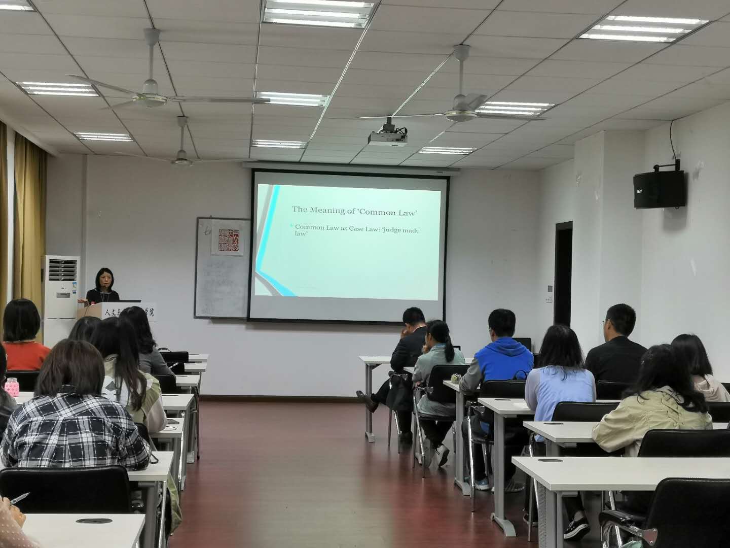 会谈结束后,沈安琪教授为学院师生做了一场题目为“英国法律体系与脱欧”的讲座,院长王建文、院长助理兼法律系主任王炳以及学院教师代表陈洁、刘耀彬、熊敬等参加了学术交流。