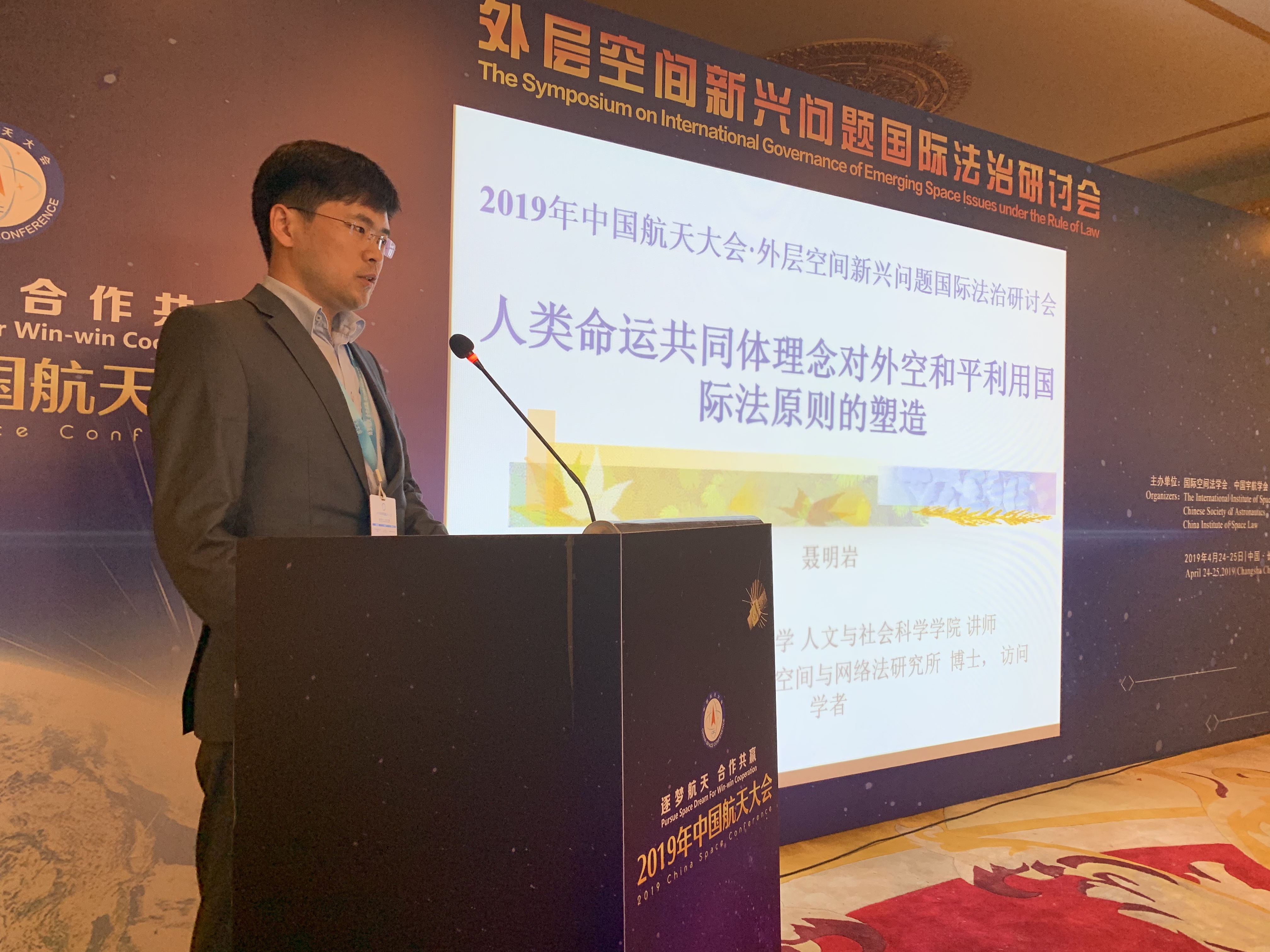 聂明岩老师参加了上述活动,并出席“外层空间新兴问题国际法治研讨会”,做了题为《人类命运共同体理念对外空和平利用国际法原则的塑造》的学术报告。