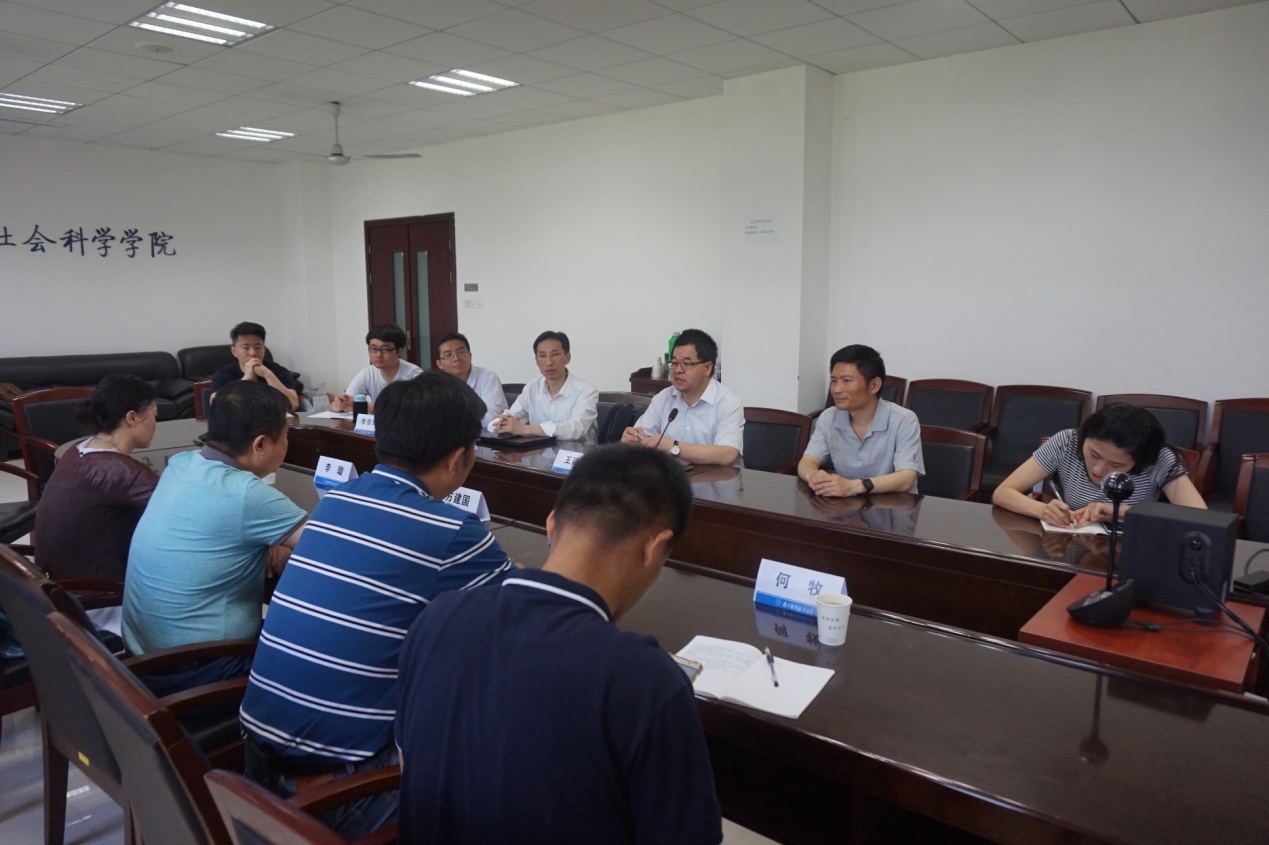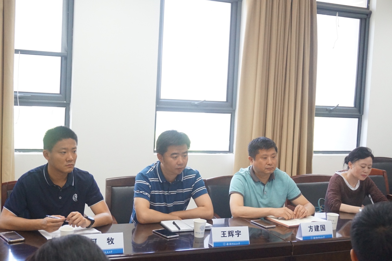 2019年5月24日,南京市秦淮区人民法院专委方建国、民二庭庭长王辉宇、副庭长李璇、法官助理何牧一行四人访问人文学院并展开了座谈。院长王建文教授主持了座谈,学院党委书记刘虎与法律系教师黄建军副教授、王炳副教授、李宗辉副研究员、洪骥博士、熊敬博士、于焕博士参加座谈。