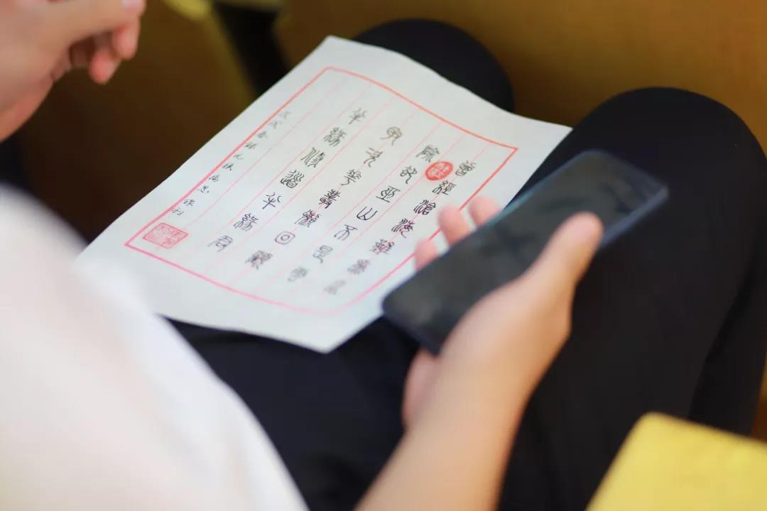 最后的互动环节,马保利机长与现场同学进行诗词知识的交流,并将自己亲手写的小篆作品赠予同学。“玲珑骰子安红豆,入骨相思知不知。”机长笑称这是他写给南航的情书。