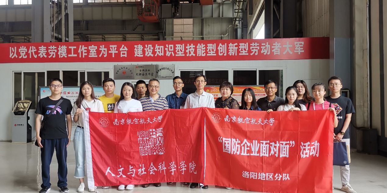 为进一步推进校企合作,增强与国防单位的联系,了解相关单位对毕业生的需求情况以及对南航大人才培养的意见建议,提高人才培养的针对性,拓宽学院就业渠道,7月10日至12日,国产成人 赴洛阳开展了为期三天的“国防企业面对面”走访调研活动。人文学院党委书记刘虎、党委副书记尹春苹、学院公管系教师邱建新、法律系教师张鸣胜、辅导员代表以及各学院的学生代表共15人参加走访调研。