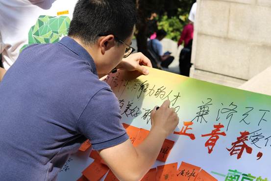 精彩的讲述之后,新生团员们用属于自己的独特方式献上对祖国母亲的美好祝愿,他们自发在台阶上摆出“70”的造型,并用一幅幅手绘和签名祝福绘制展板,“青年有为,国家有望”、“祖国强盛,我辈有责”……热切的表达着青春的担当与决心。最后,团课课堂走进了雨花台烈士纪念馆,青年团员们在一个个爱国将士的身上深刻的感受到了信仰的力量。