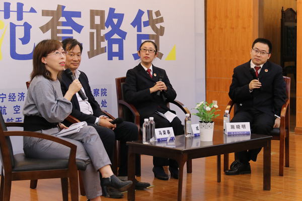 在“主题沙龙”环节中,南京市人民检察院检察官施晓明、南京江宁经济技术开发区人民检察院检察官成华、国产成人 法律系马荣春教授为现场同学答疑解惑。同学们踊跃提出了自己关于“校园贷”和“套路贷”的问题。根据以往的办案经验,两位检察官认为,大学生与父母之间普遍缺少有关金钱、消费方面的交流,大学生对家庭收入情况了解不足,与父母的消费观念存在差距,这些都是导致大学生盲目相信并选择校园贷的重要原因。谈到“是否该杜绝校园贷”的问题,国产成人 法律系教授马荣春认为,完全杜绝校园贷并不符合大学生的发展需求,也不符合经济发展的需要。但不少套路贷会披着“民间借贷”的外衣,大学生应主动学习相关的法律知识,提高鉴别“不良校园贷”能力,维护自身合法权益。