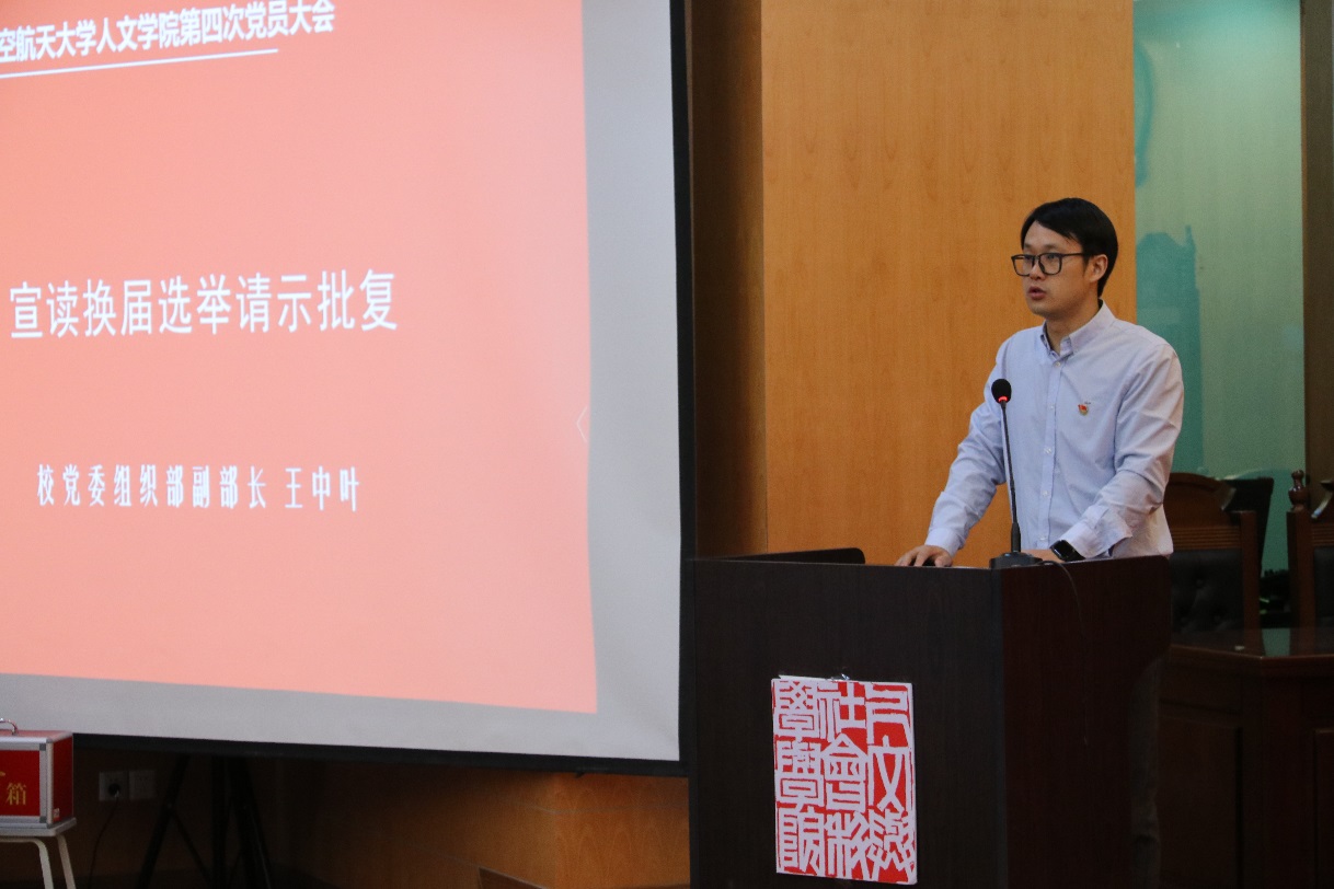 随后,王中叶宣读了校党委组织部《关于同意中共国产成人 委员会换届选举请示的批复》。