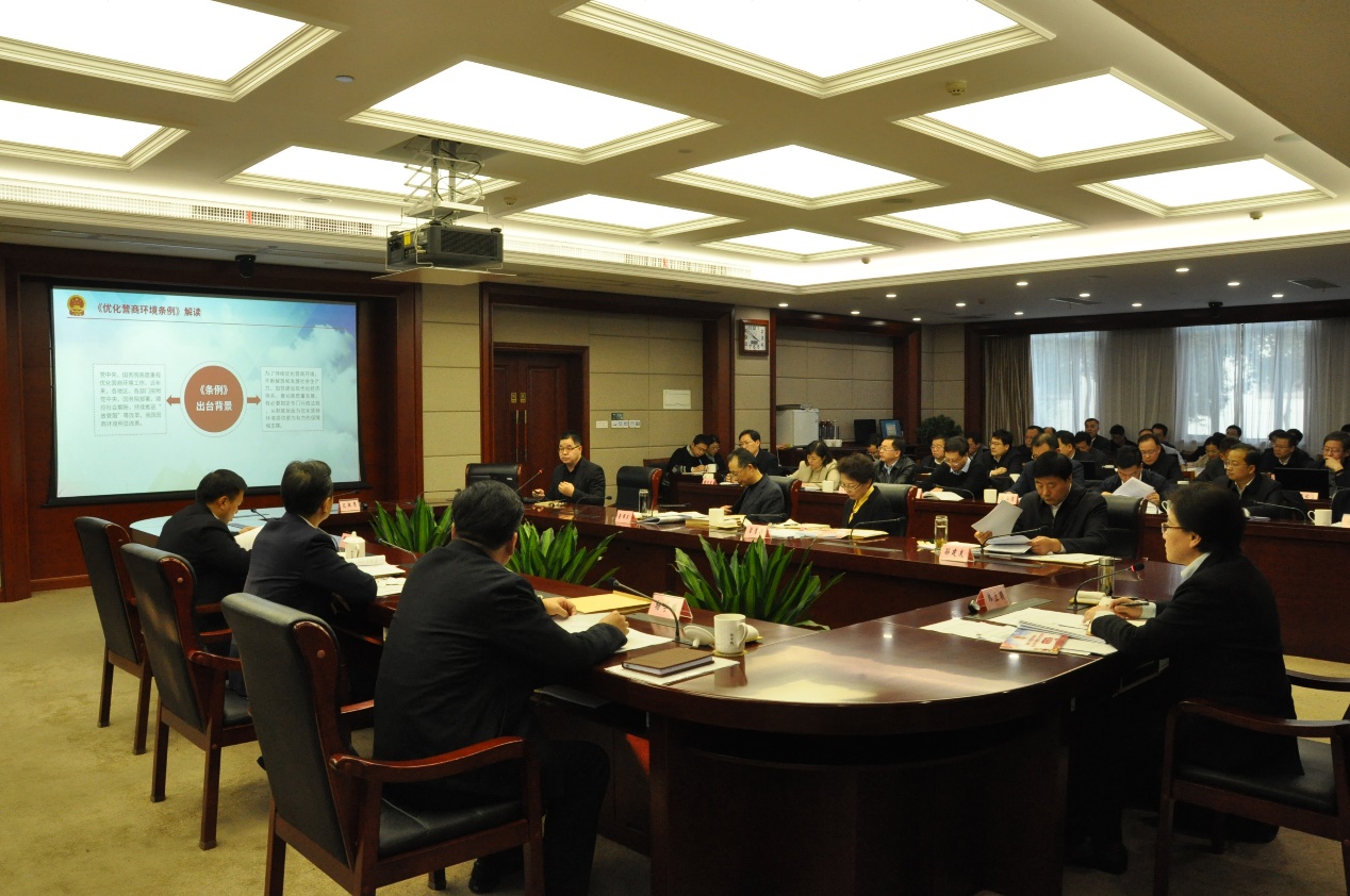 12月5日下午,市政府第54次常务会议安排专题法治讲座,邀请国产成人 院长、博士生导师王建文教授就国务院颁布的《优化营商环境条例》进行解读。市委副书记、代市长韩立明主持会议并讲话,市政府组成人员、各区政府、江北新区和市各相关部门主要负责人参加。