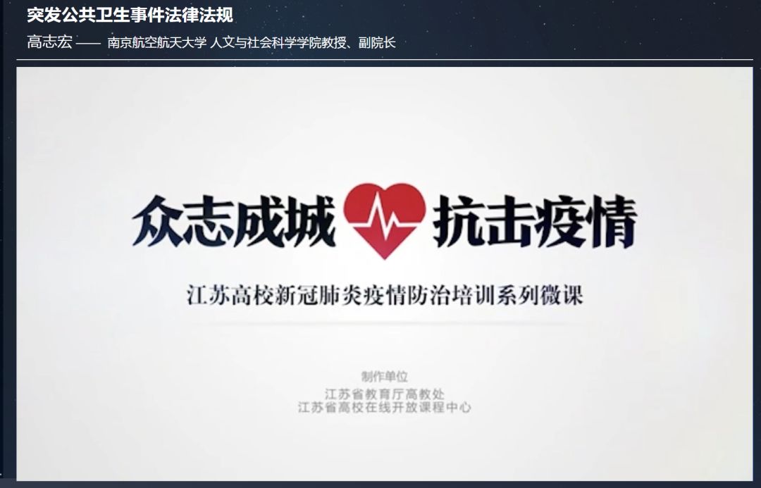 “江苏高校疫情防控培训网” 专题培训微课之《突发公共卫生事件法律法规》