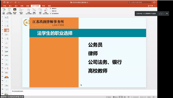 5月5日下午,第六期“人文青年说”优秀校友分享会如期举行,本期分享会邀请到了优秀院友——王云霞律师。王云霞律师是人文学院2009届经济法专业硕士研究生、江苏玖润律师事务所创始人,在并购重组、私募基金等专业领域成就卓著,曾获得“南京市十佳青年律师”等荣誉称号。此次分享会,王律师以“我的律师成长之路”为主题,为同学们分享了自己成长之路上的“激情与坚持”。